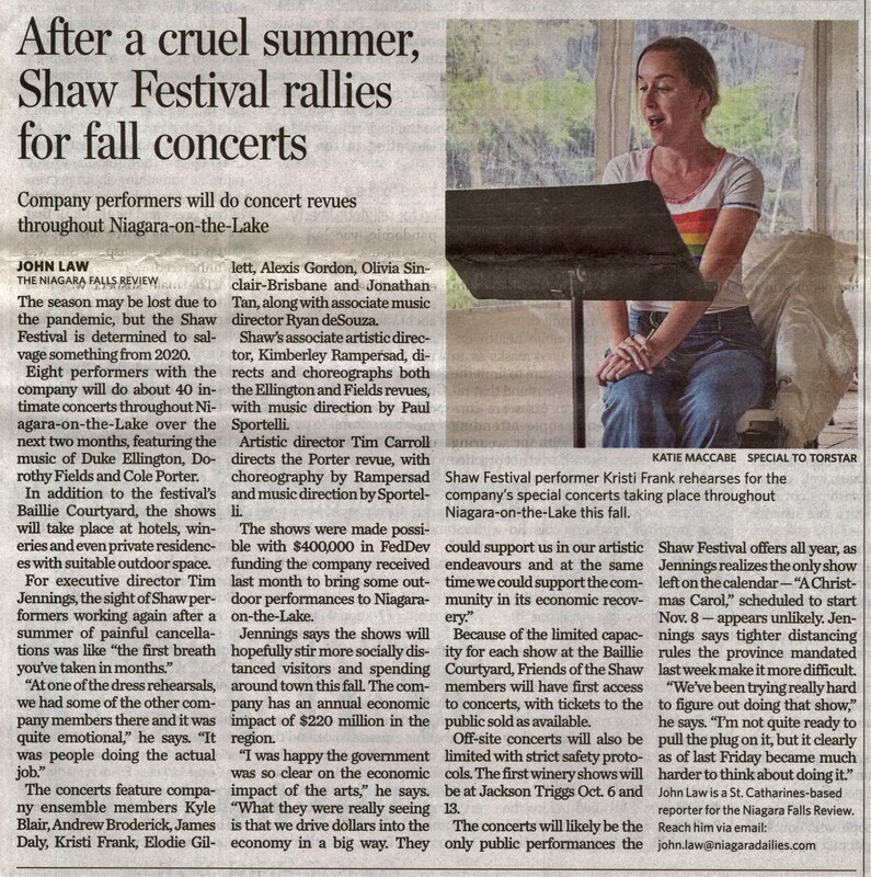 - Shaw Festival / Frank, Kristi / COVID-19 pandemic / intimate concerts / Niagara-on-the-Lake / Jennings, Tim / economic recovery