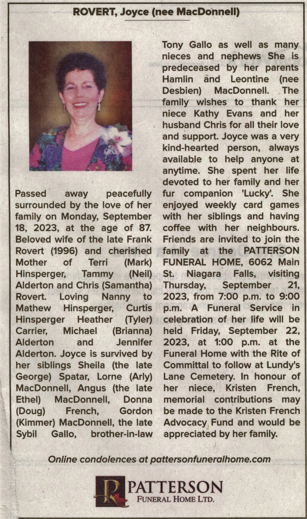 Rovert, Joyce September 19 2023 pg A15.jpg