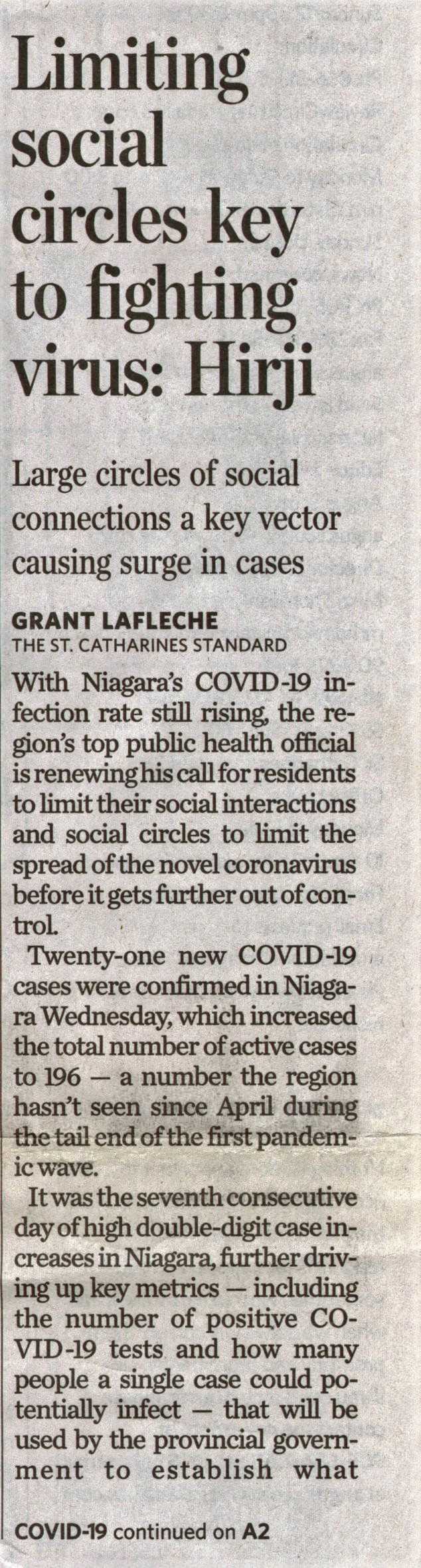 - Limiting social circles key to fighting virus: Hirji : Large circles of social connections a key vector causing surge in cases