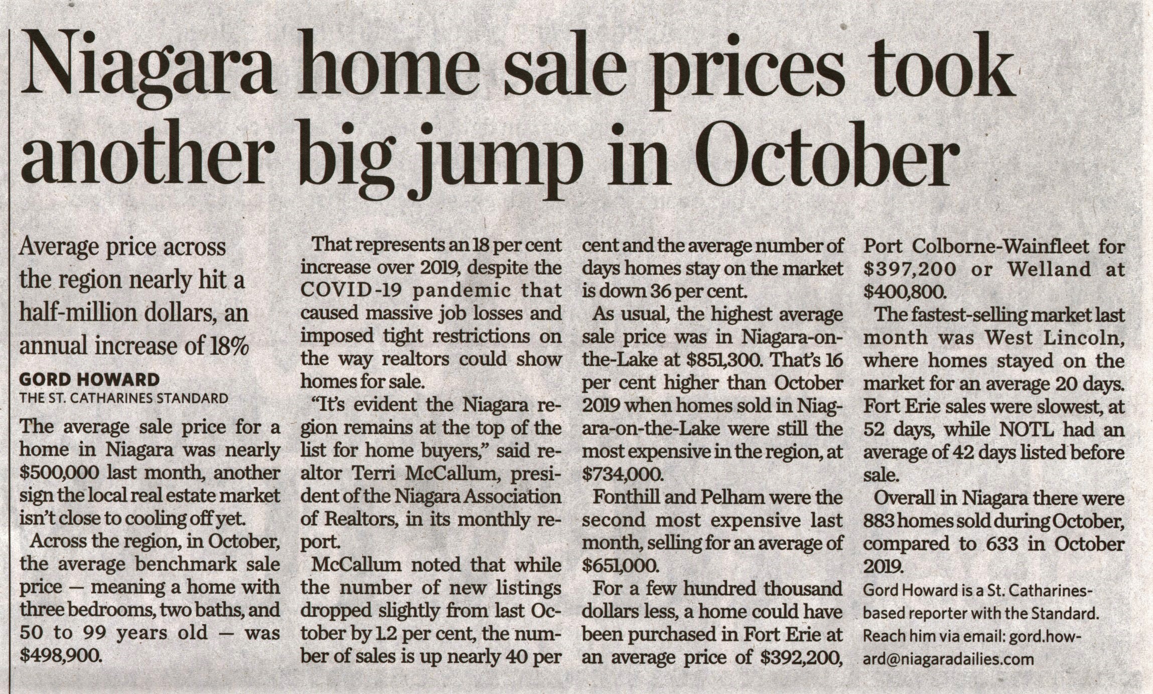 - Niagara Association of Realtors / McCallum, Terry / housings costs soar / COVID-19 pandemic