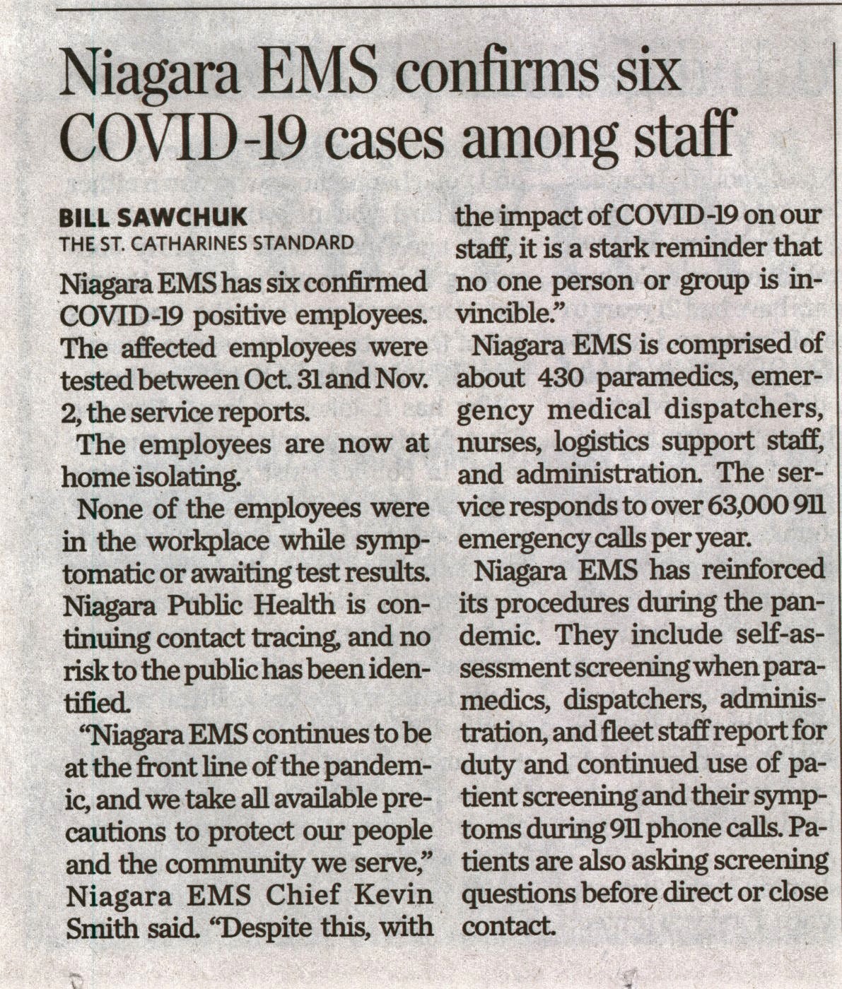 - Niagara EMS / COVID-19 cases / Niagara Public Health / Smith, Kevin