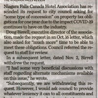 - Niagara Falls Canada Hotel Association / Birrell, Doug / leniency to businesses / COVID-19 pandemic / Clark, Tiffany