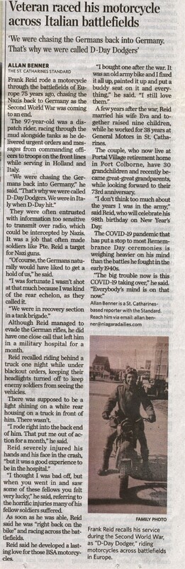 Veteran raced his motorcycle across Italian battlefields : 'We were chasing the Germans back into Germany. Thats why we were called D-Day Dodgers'