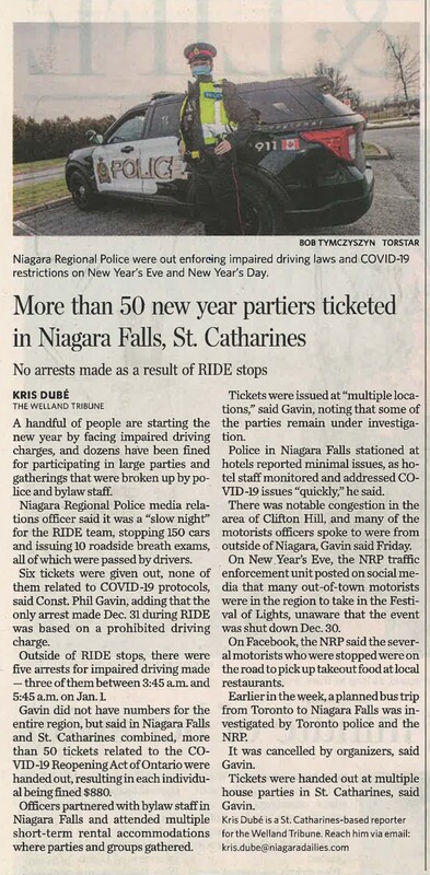 More than 50 new years partiers ticketed in Niagara Falls, St. Catharines : No arrests made as a result of RIDE stops