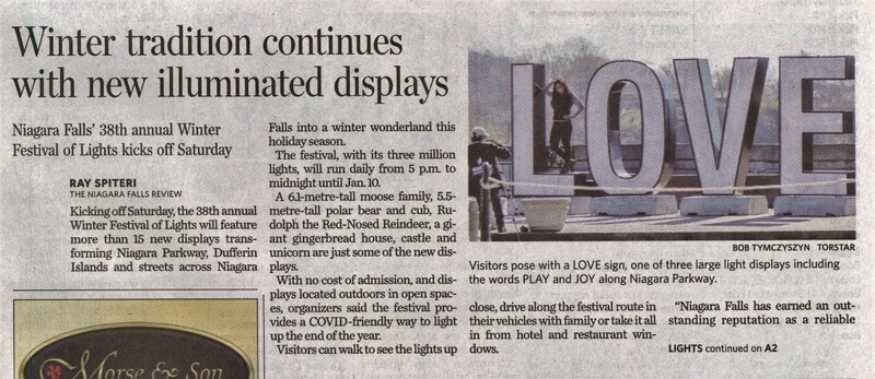 - Winter tradition continues with new illuminated displays : Niagara Falls' 39th annual Winter Festival of Lights kicks off Saturday