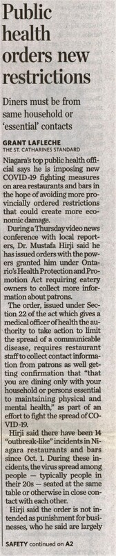 - Public health orders new restrictions : Diners must be from same household or 'essential' contacts