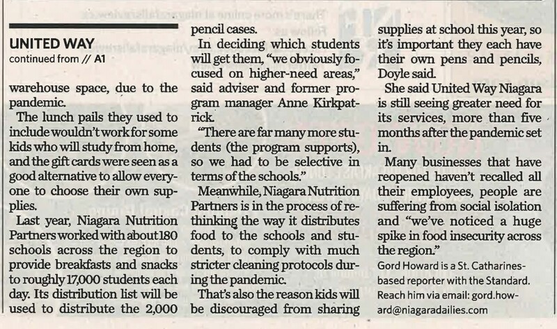- Algoma Central Corp. / United Way Niagara / Niagara Nutrition Partners / Doyle, Ashleigh / COVID-19 pandemic