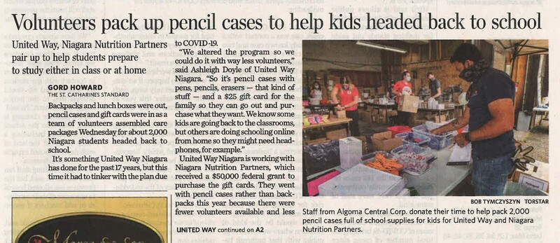 - Volunteers pack up pencil cases to help kids headed back to school : United Way, Niagara Nutrition Partners pair up to help students prepare to study either in class or at home