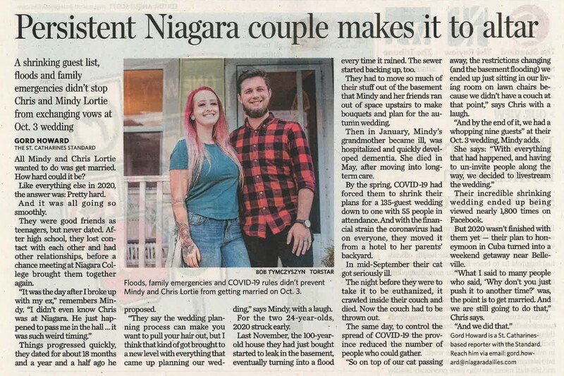 Persistent Niagara couple makes it to altar : a shrinking guest list, floods and family emergencies didn't stop Chris and Mindy Lortie from exchanging vows at Oct. 3 wedding