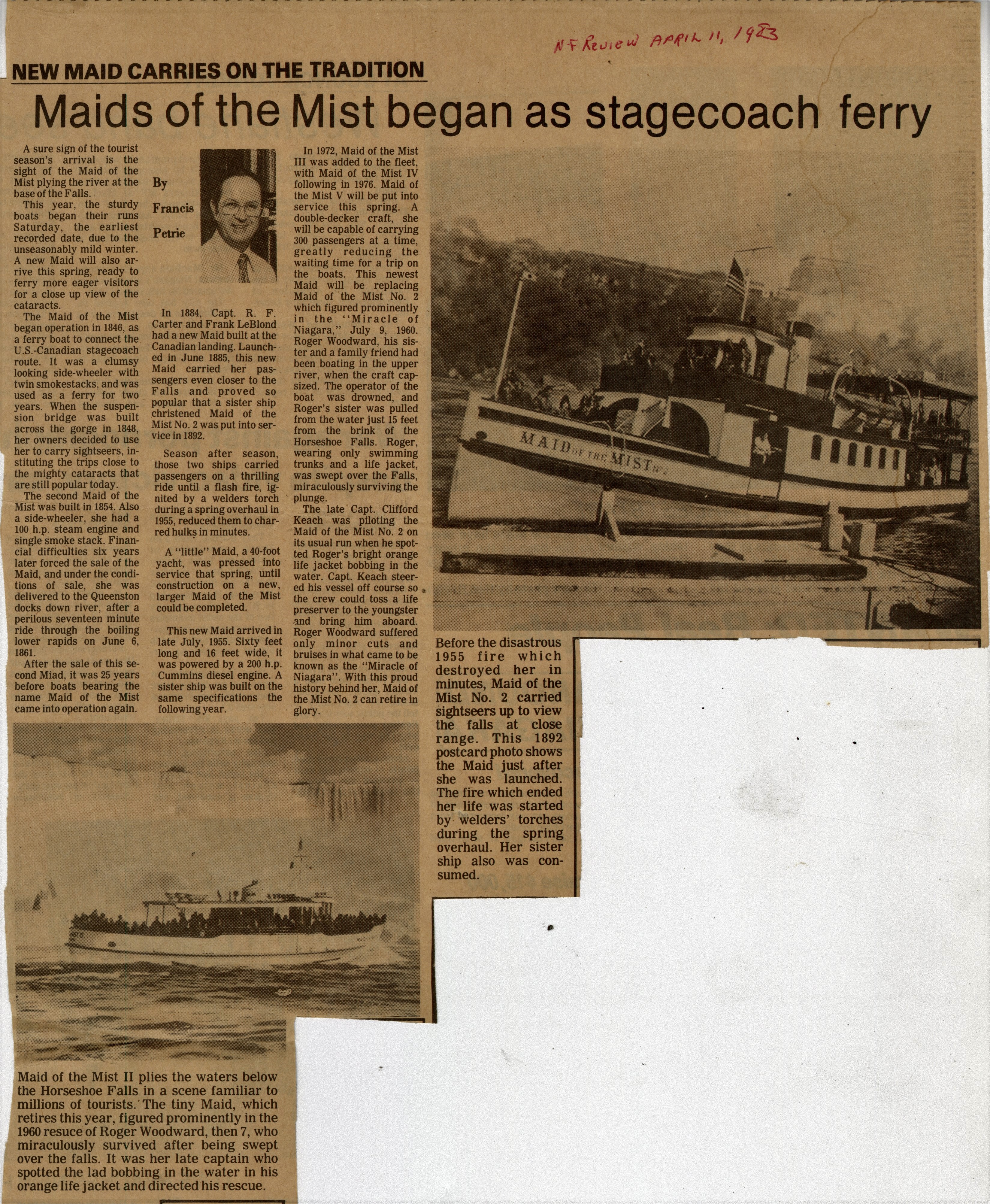 - New Maid Carries on the Tradition: Maids of the Mist began as stagecoach ferry