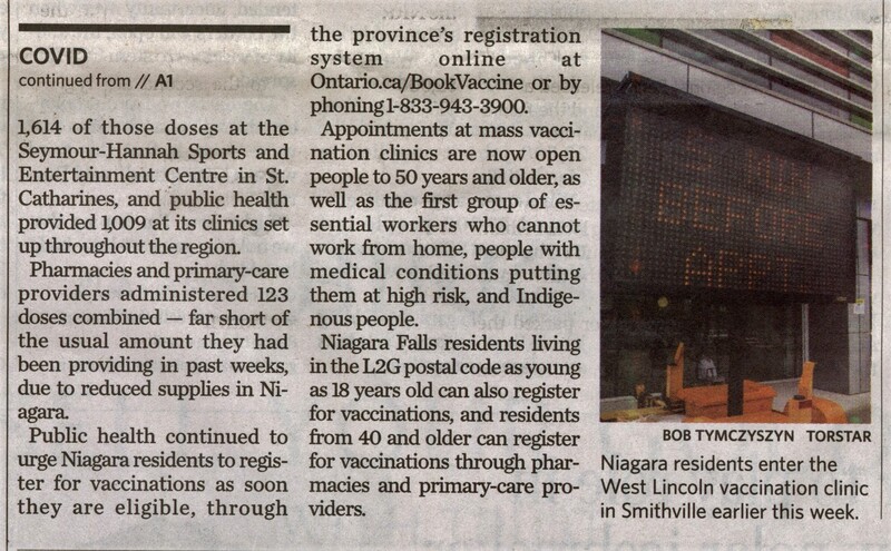 - COVID-19 pandemic / new cases / Niagara Health / vaccines