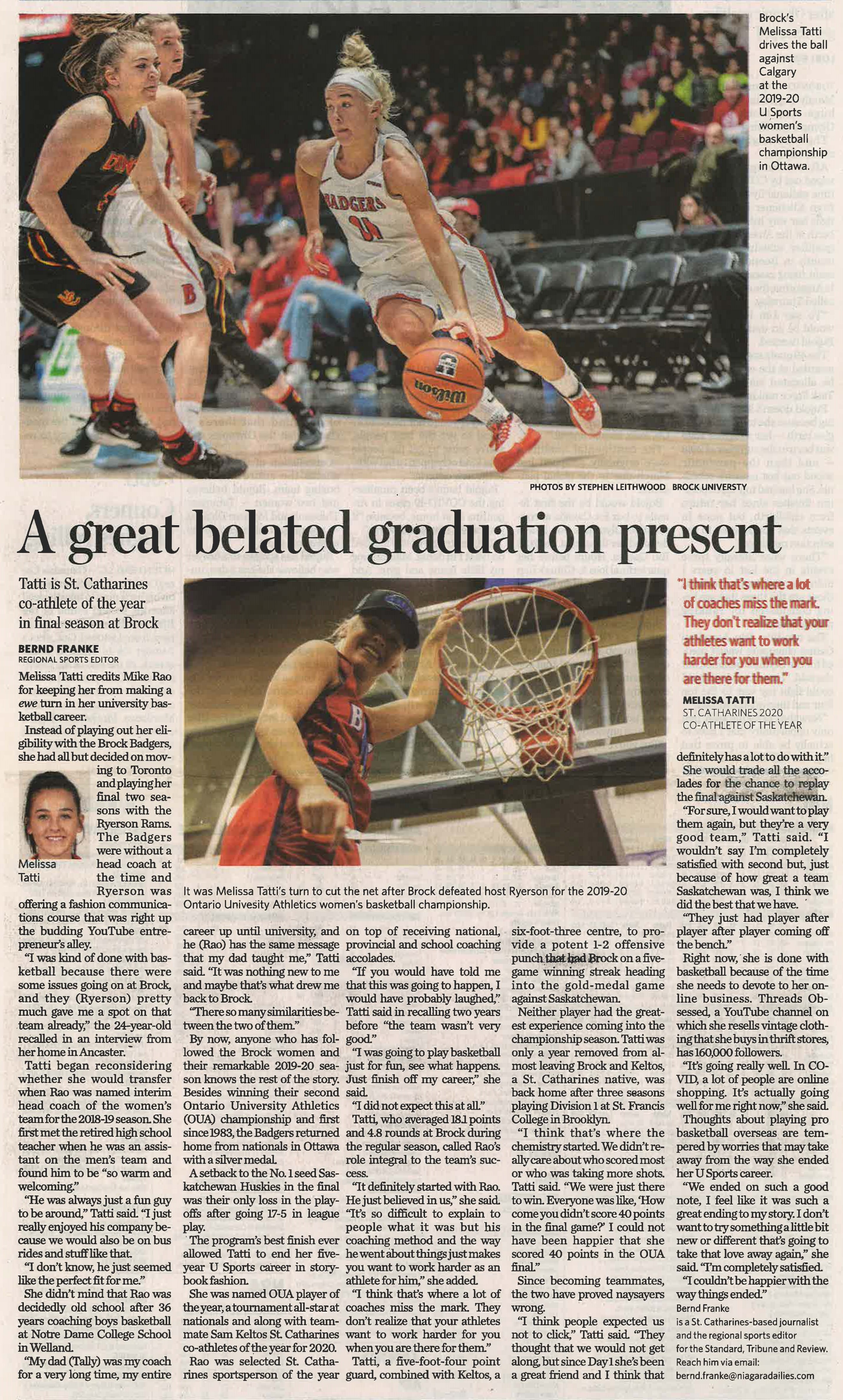 - A great belated graduation present : Tatti is St. Catharines co-athlete of the year in final season at Brock