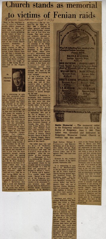 - Ridgeway Memorial United Church / memorials / Fenian