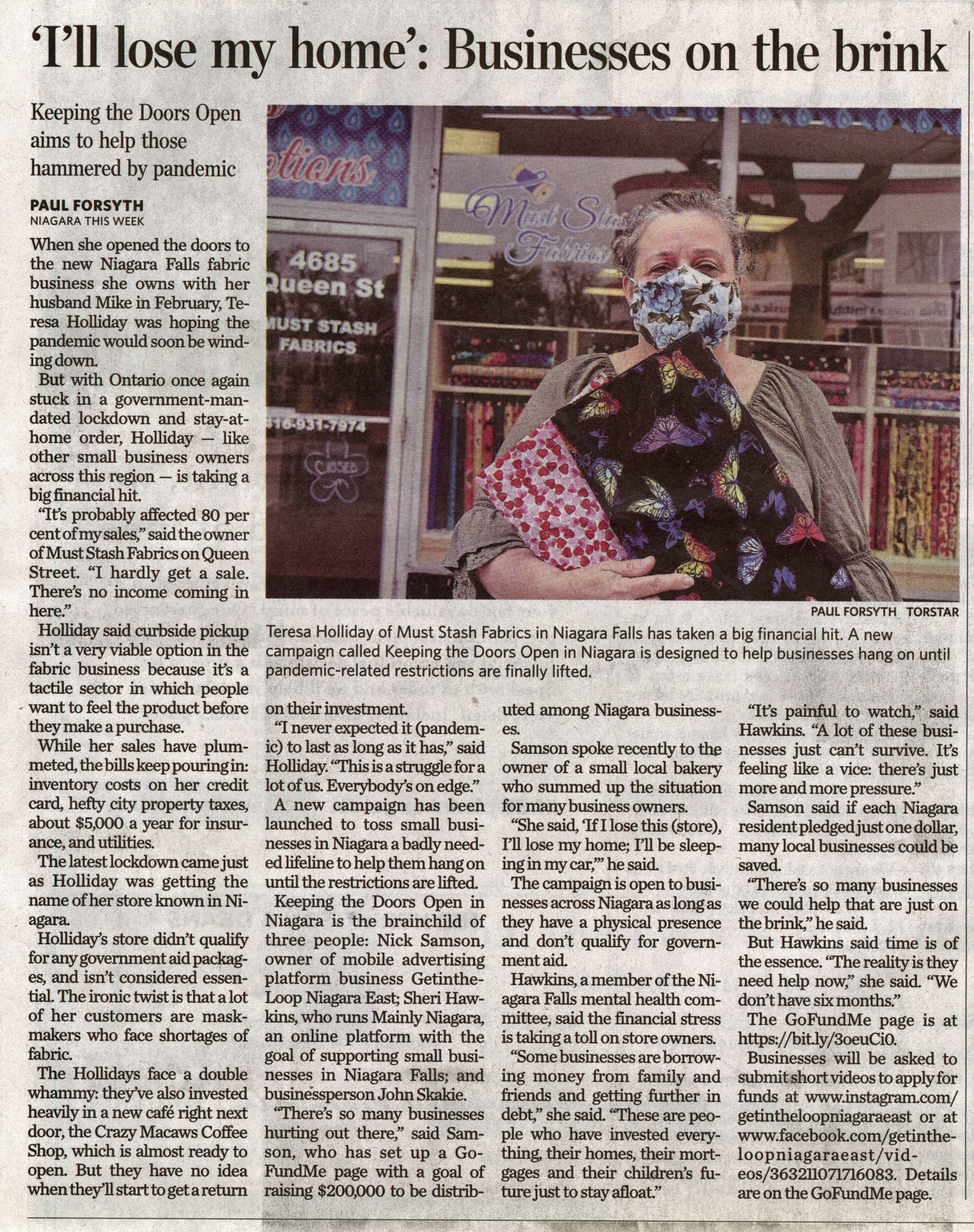 - 'I'll lose my home' : Businesses on the brink : Keeping the Doors Open aims to help those hammered by pandemic