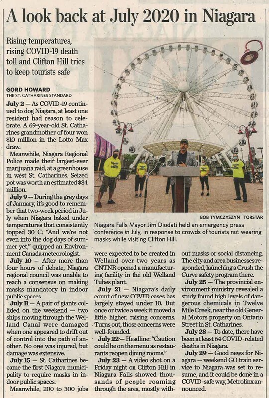 - A look back at July 2020 in Niagara : Rising temperatures, rising COVID-19 death toll and Clifton Hill tries to keep tourists safe