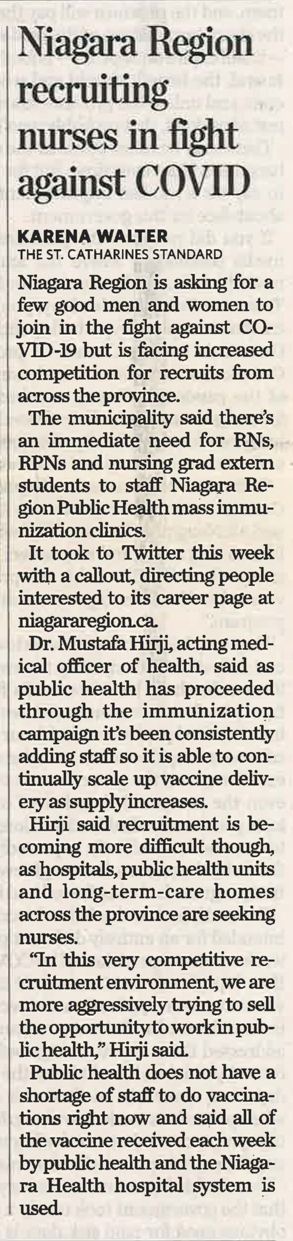 - Niagara Region recruiting nurses in fight against nurses in fight against COVID