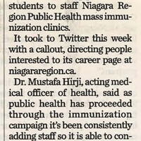 - COVID 19 pandemic / Niagara Region Public Health / Hirji, Mustafa Dr. / medical staff