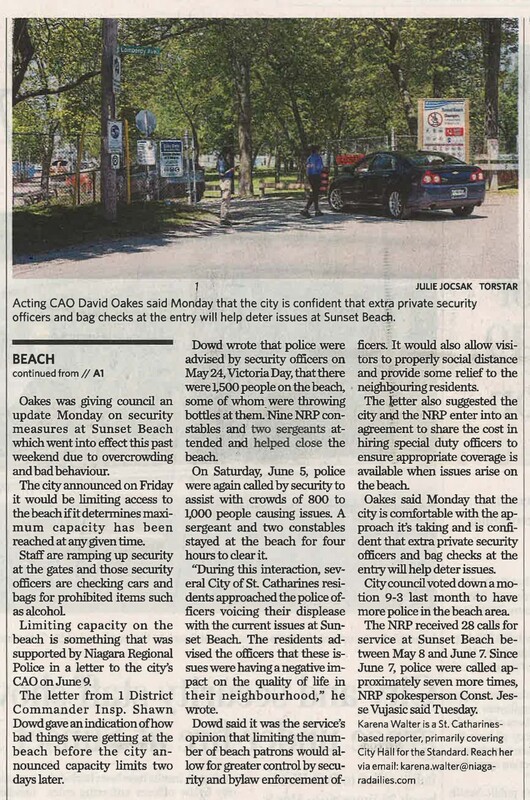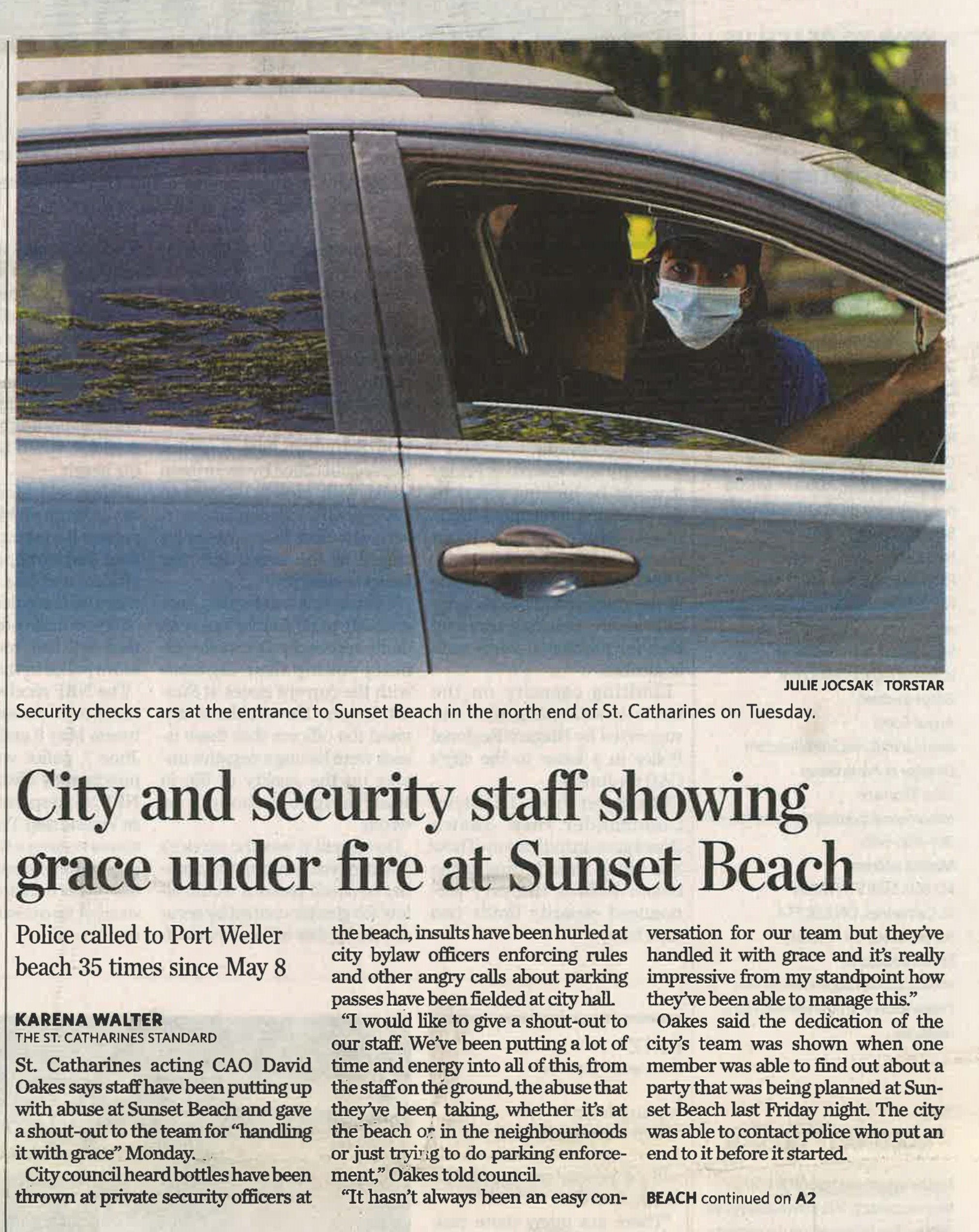 City and security staff showing grace under fire at Sunset Beach : police called to Port Weller beach 35 times since May 8