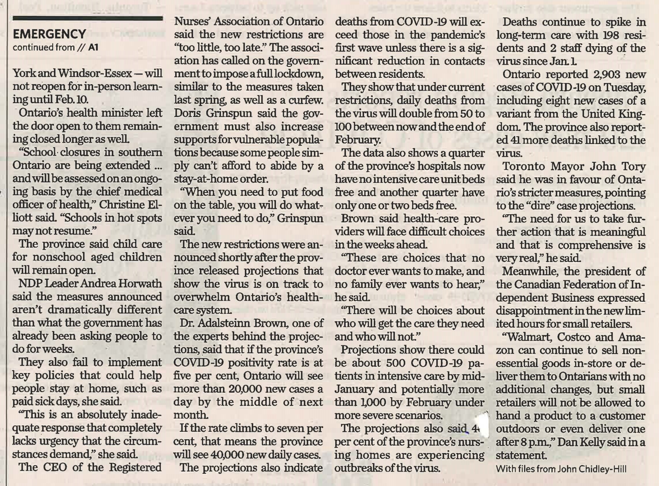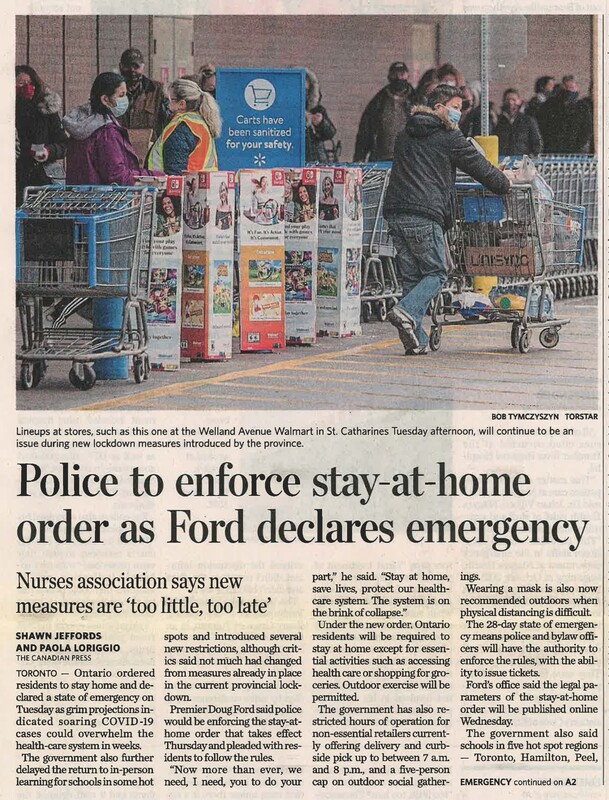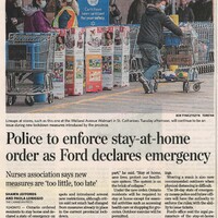 - Police to enforce stay-at-home order as Ford declares emergency : Nurses association says new measures 'too little, too late'