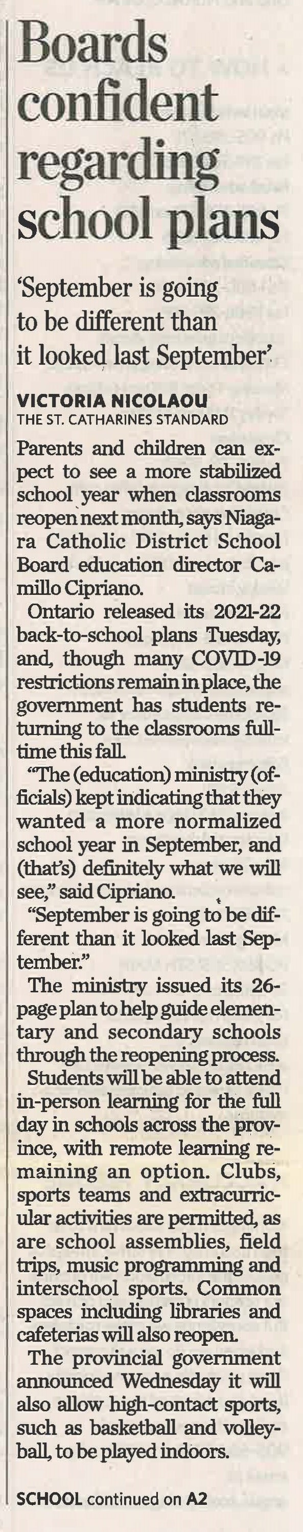 - Boards confident regarding school plans: 'September is going to be different than it looked last September'