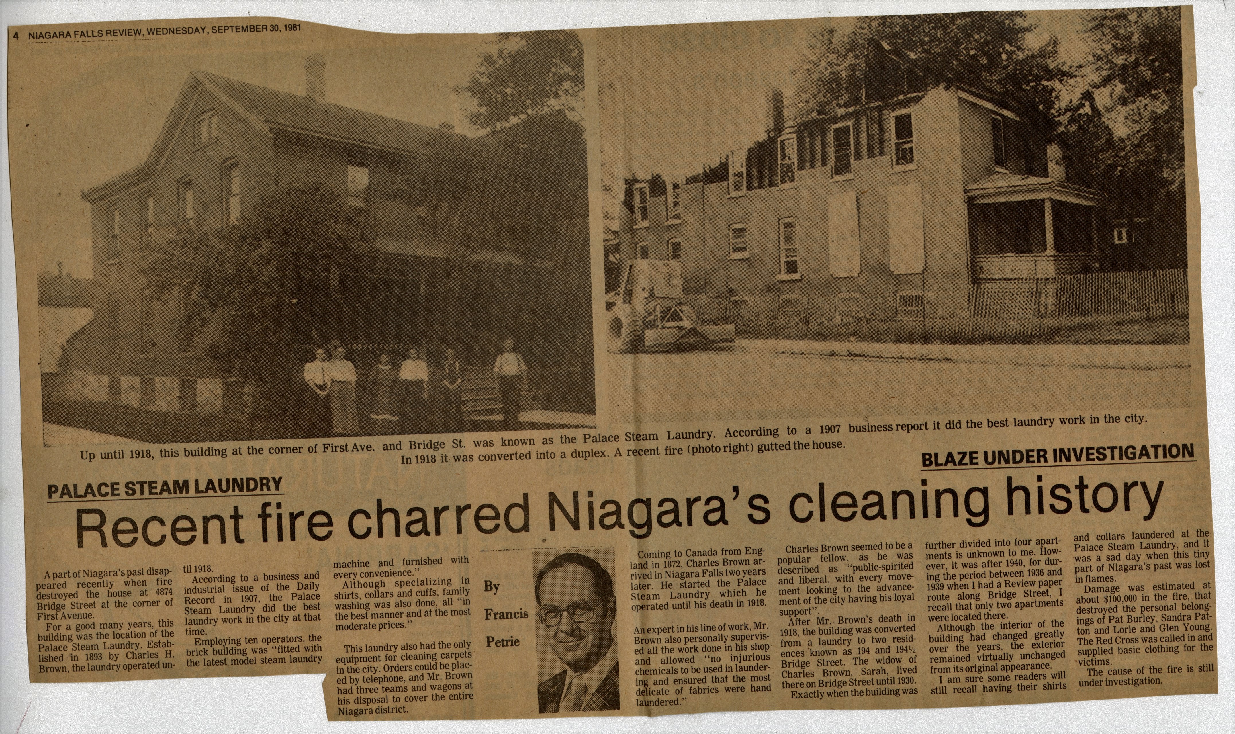 - Palace Steam Laundry - Blaze Under Investigation : Recent fire charred Niagara's cleaning history