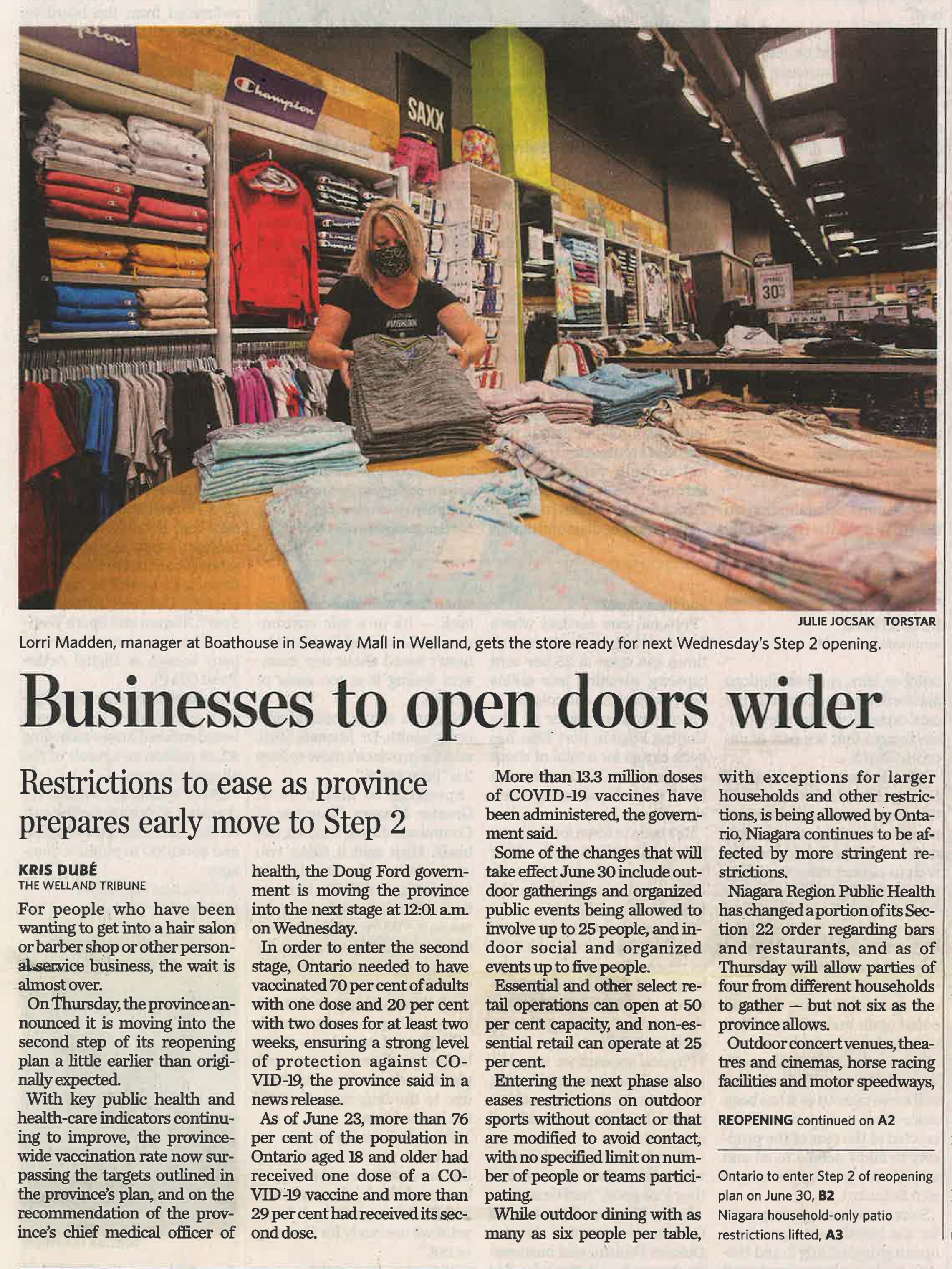 - Businesses to open doors wider : restrictions to ease as province prepares early move to Step 2