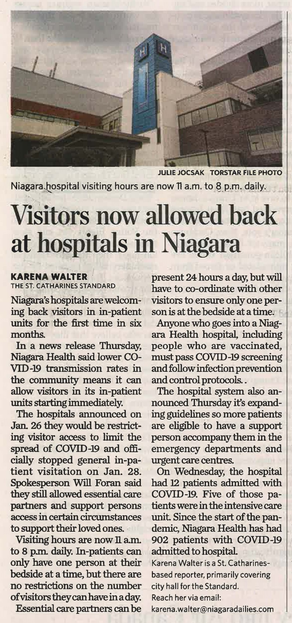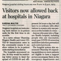 - Visitors now allowed back at hospitals in Niagara