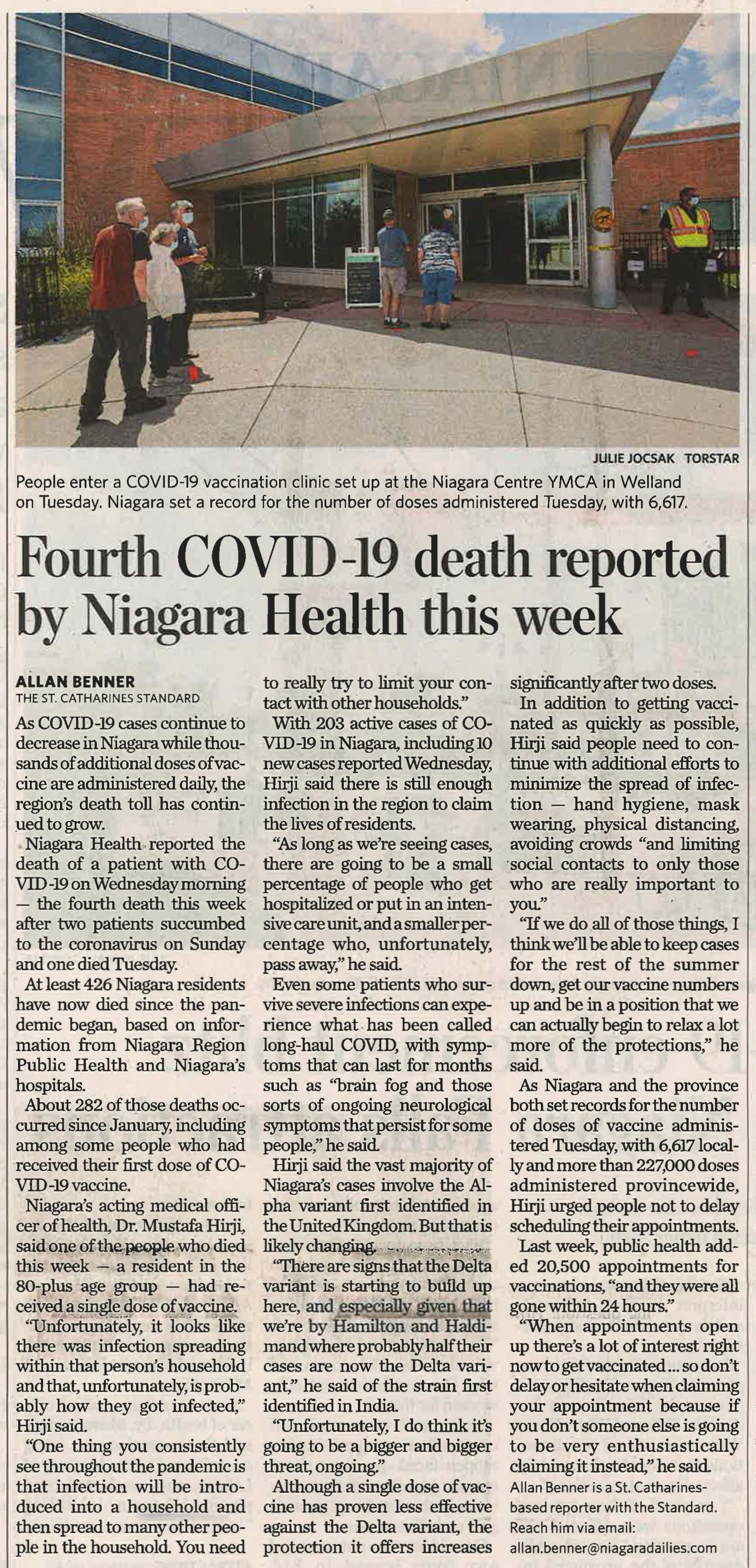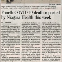 - Fourth COVID-19 death reported by Niagara Health this week