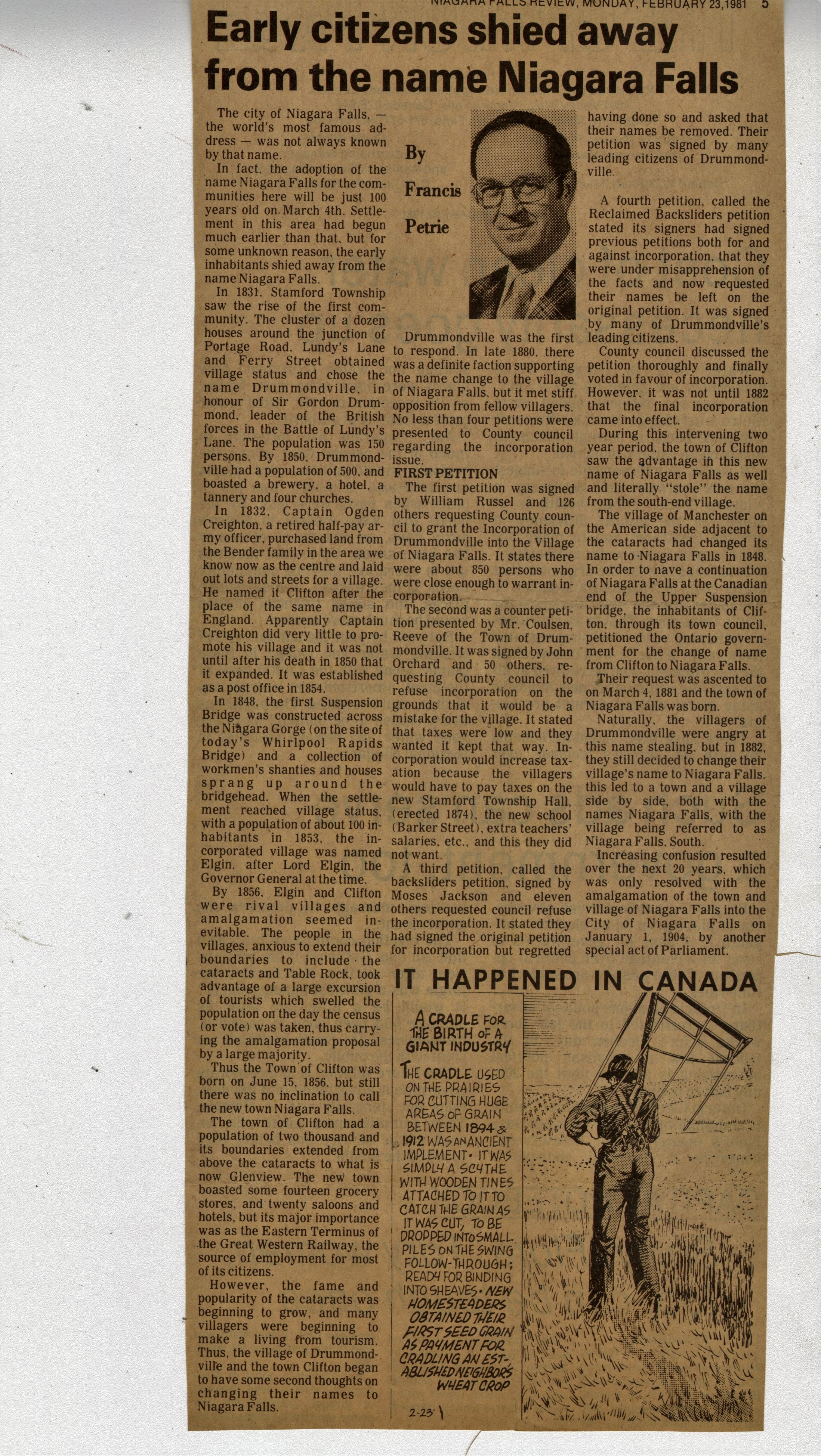 - Francis Petrie Newspaper Column Collection