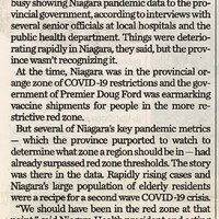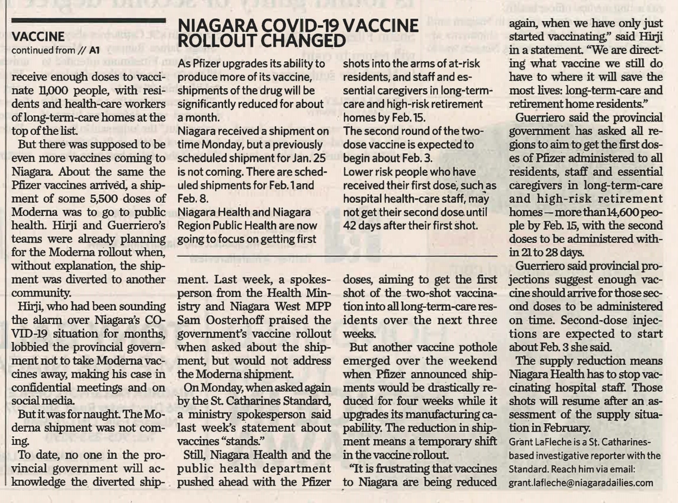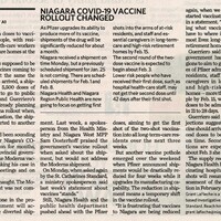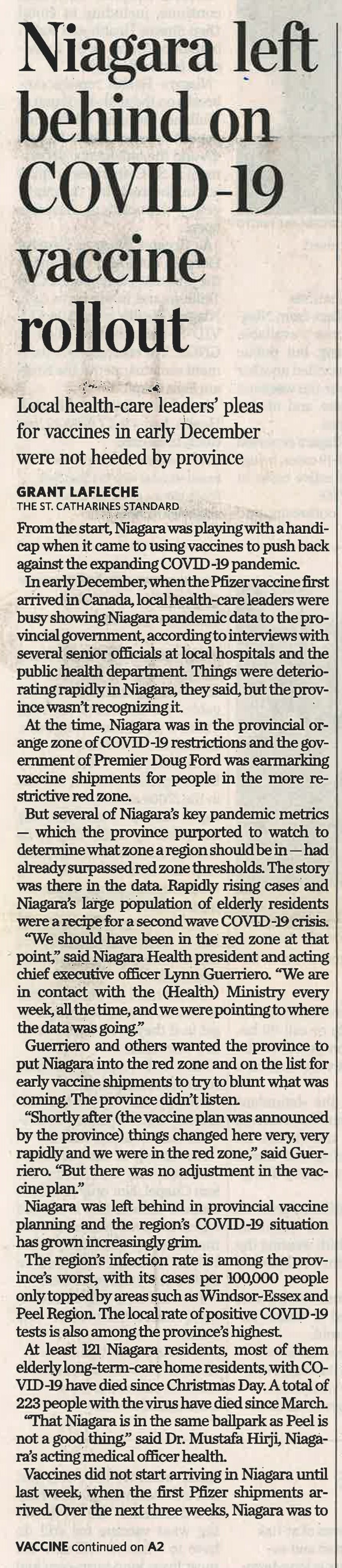 - Niagara left behind on COVID-19 vaccine rollout : Local health-care leaders' pleas for vaccines in early December were not heeded by province