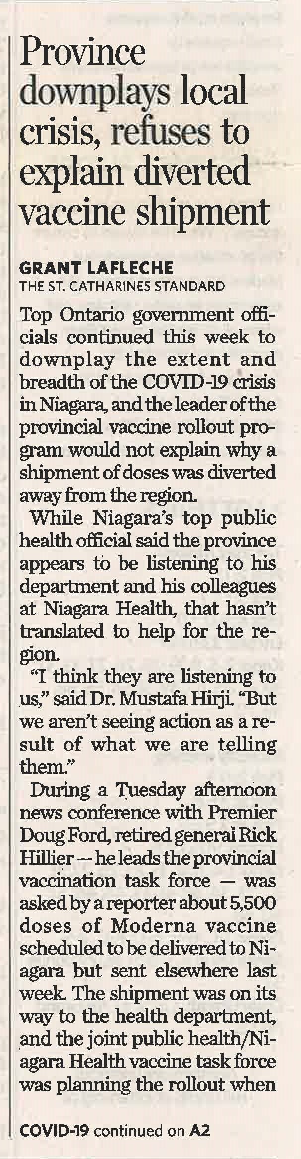 - Province downplays local crisis, refuses to explain diverted vaccine shipment