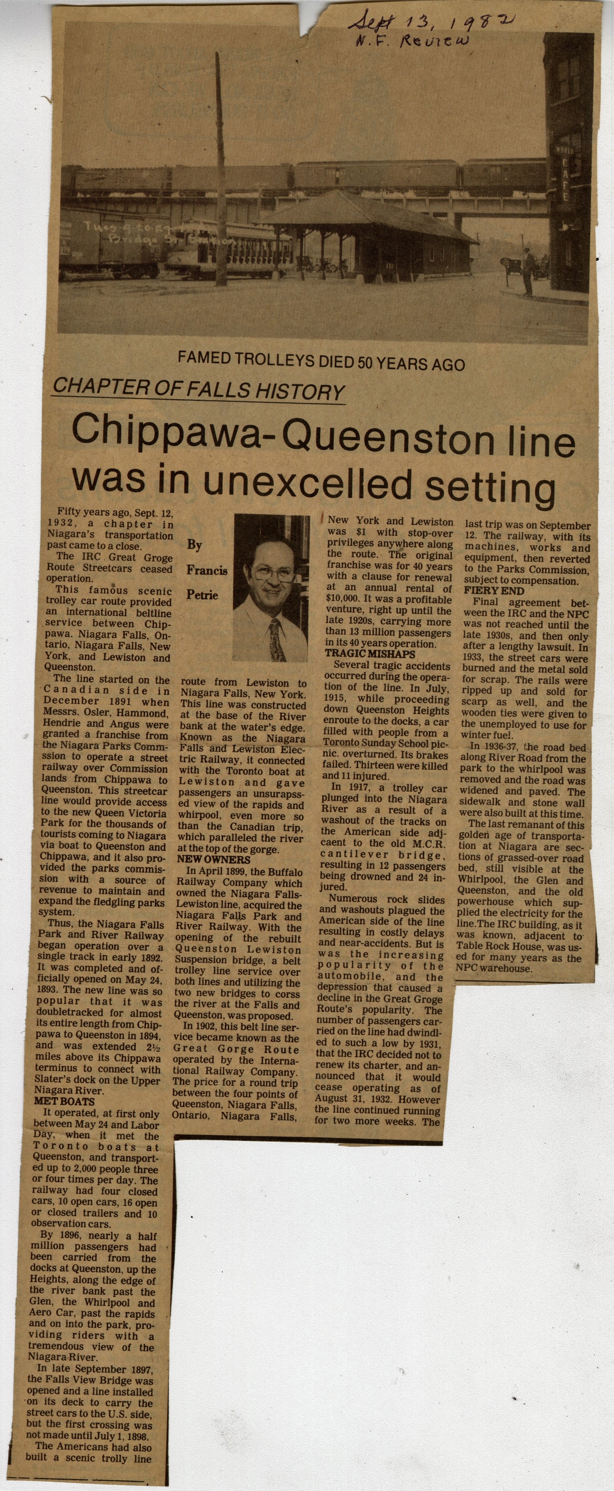 - Chapter of Falls History : Chippawa-Queenston line was in unexcelled setting