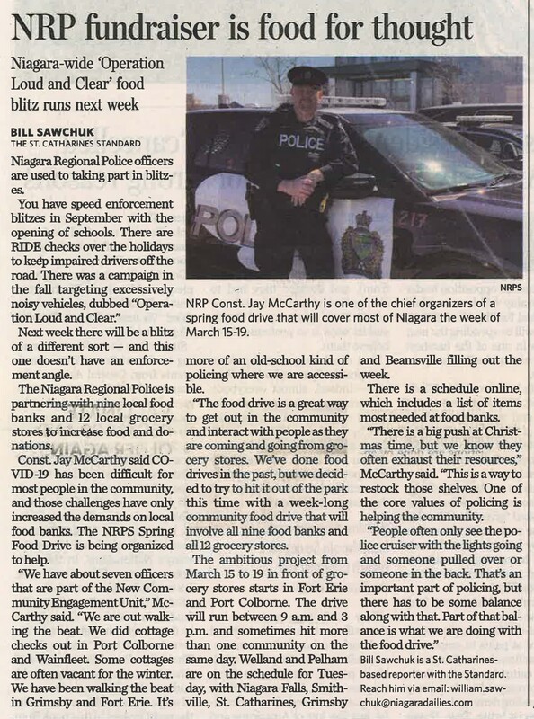 - NRP fundraiser is food for thought : Niagara-wide 'Operation Loud and Clear' food blitz runs next week