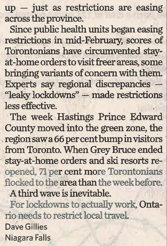 - Travel between regions will result in new lockdowns Re: moving Niagara to orange zone 'absolutely the wrong thing to do,' says Hirji, March 10