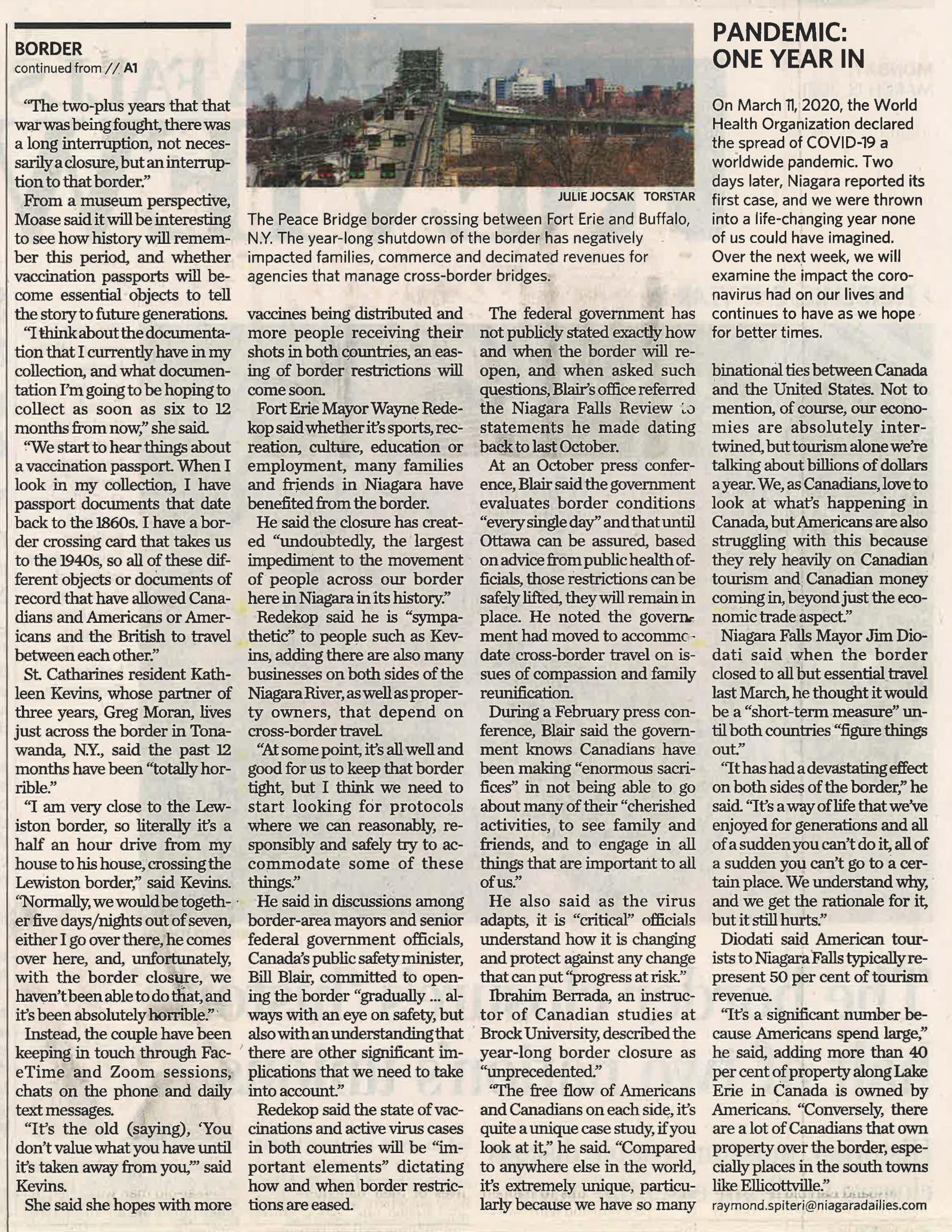 - The border closure's 'historic' halt of two nation's unions : Historian, museum, couple discuss closure to all but essential travel
