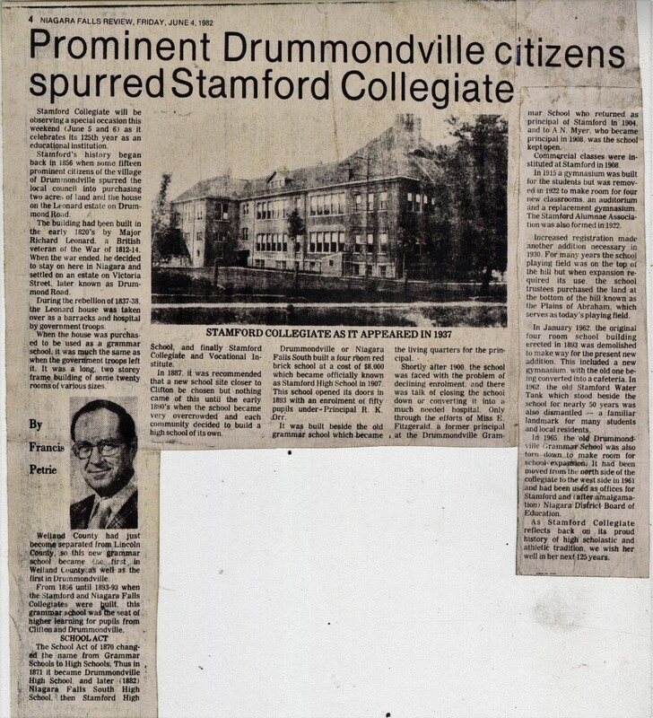 - Prominent Drummondville citizens spurred Stamford Collegiate