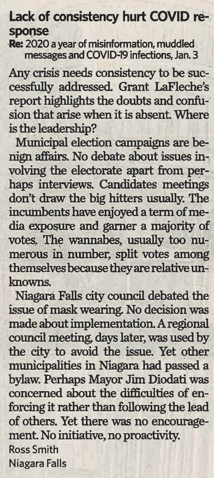 - LaFleche, Grant / Niagara Falls city council / mask bylaw