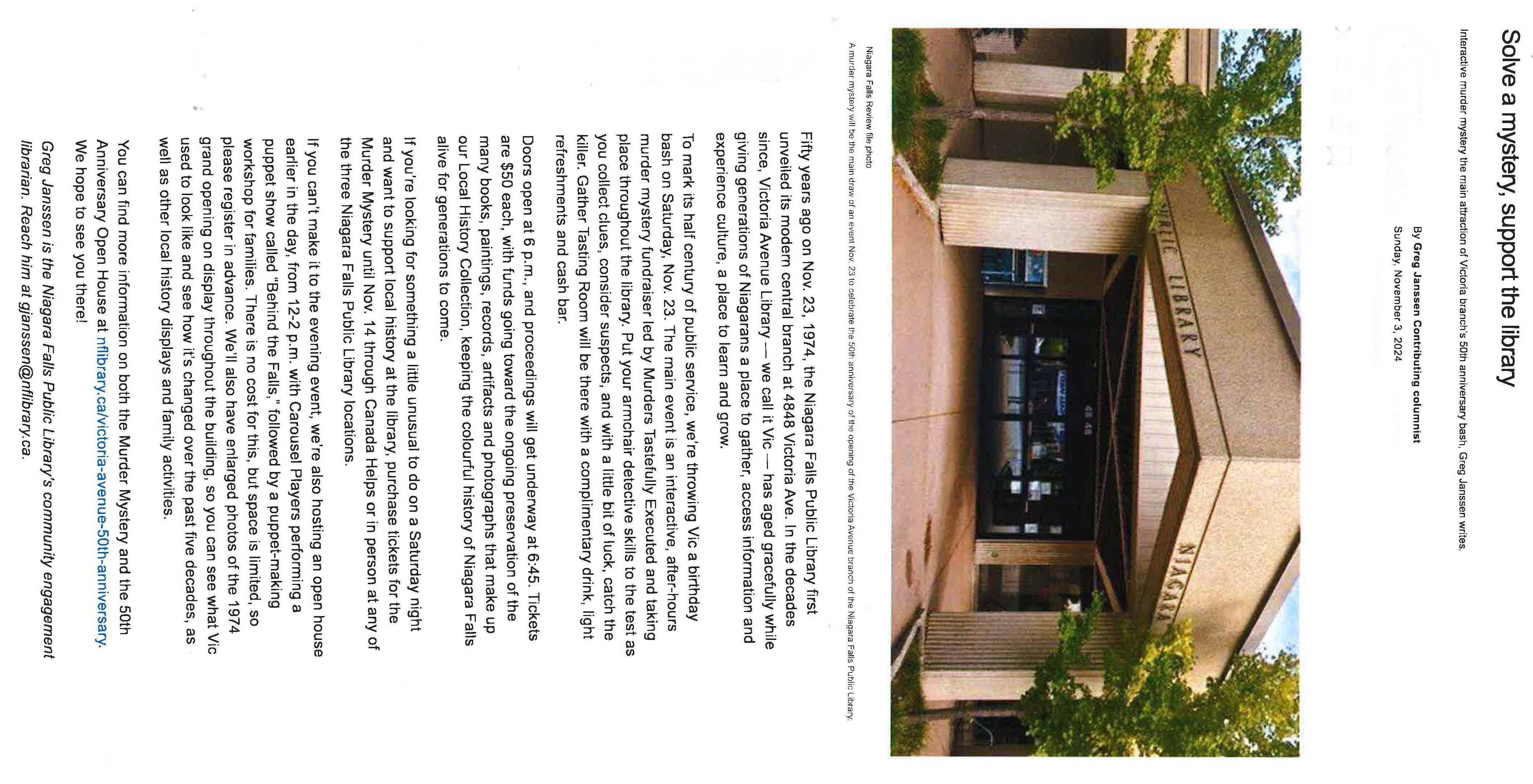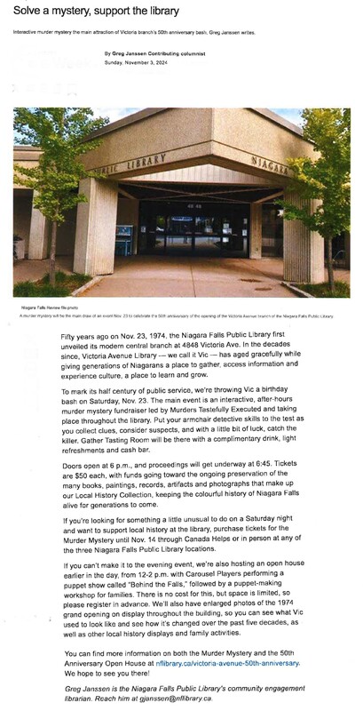 - Solve a mystery, support the library : Interactive murder mystery the main attraction of Victoria branch's 50th anniversary bash