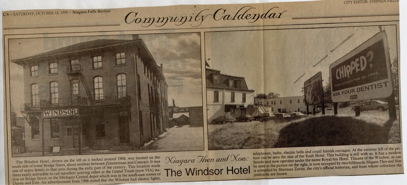 - The Windsor Hotel / lower Bridge Street / Zimmerman / Cataract Street / Grand Trunk Station / Michigan Central Depot
