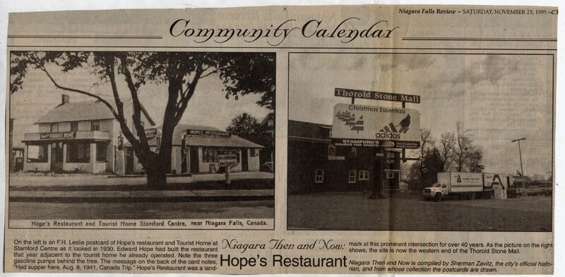 - Hope, Edward / Hope's Restaurant and Tourist Home Stamford Centre / Thorold Stone Mall