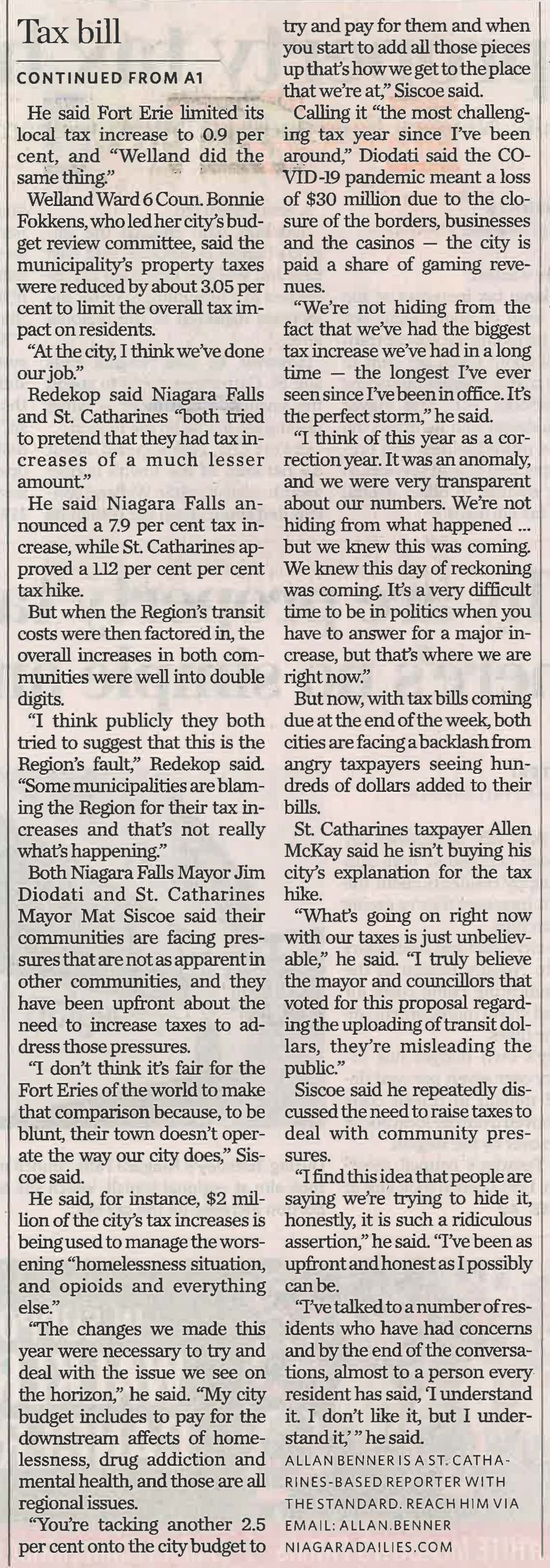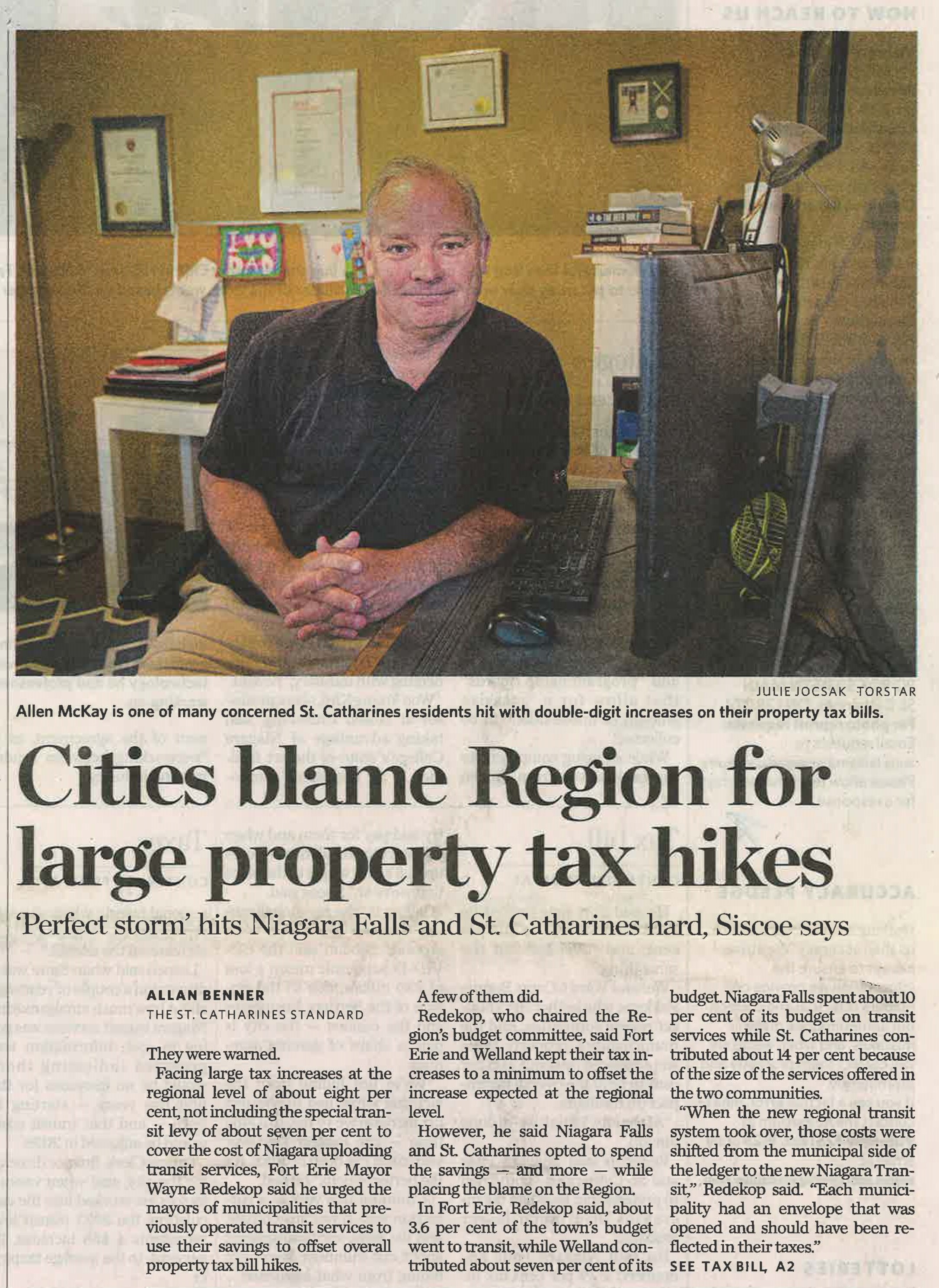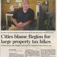 - Cities blame Region for large property tax hikes : 'perfect storm' hits Niagara and St. Catharines hard, Siscoe says