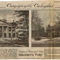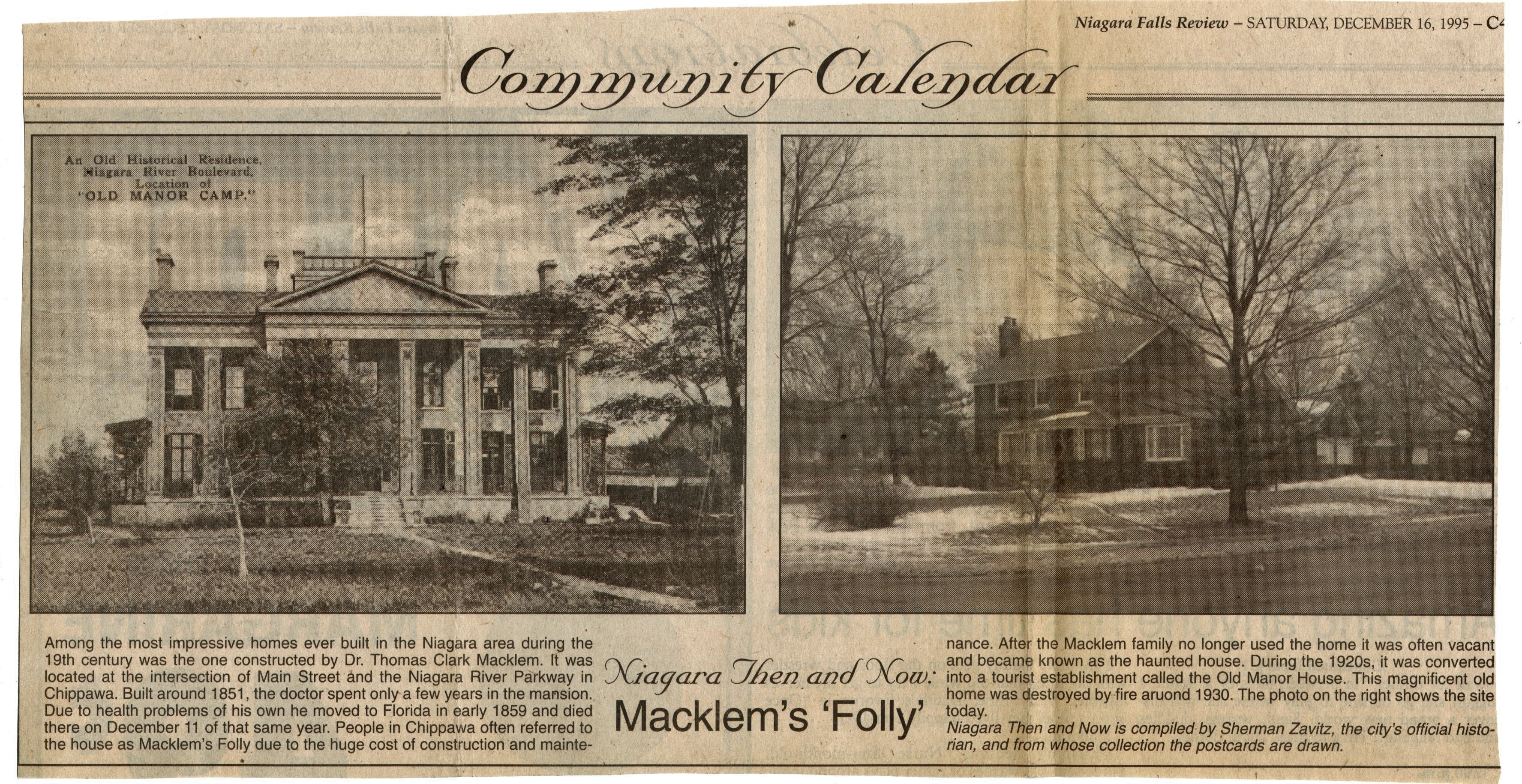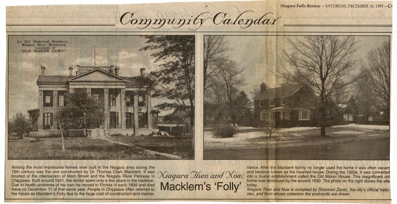 - Macklem, Thomas Clark (Dr.) / Niagara River Parkway / Chippawa / Old Manor House