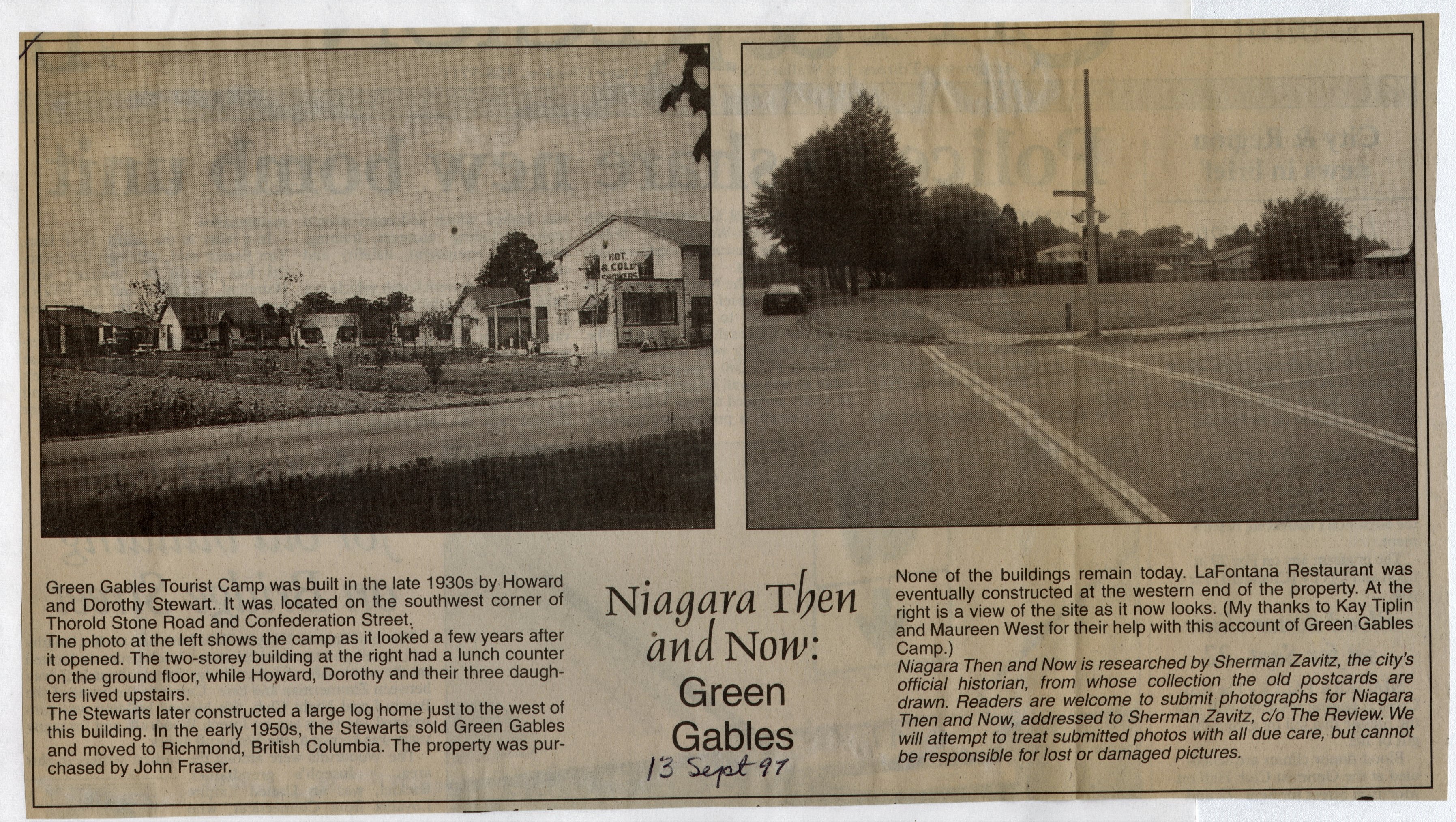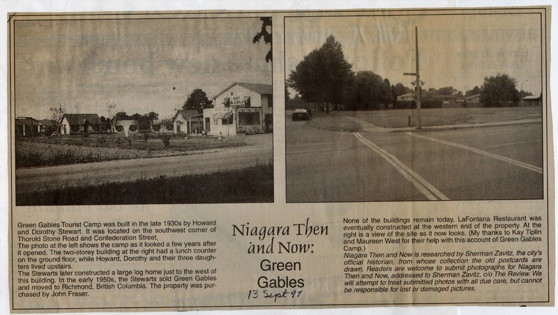 - Green Gables Tourist Camp / Stewart, Howard & Dorothy / Thorold Stone Road / Confederation Street / LaFontana Restaurant