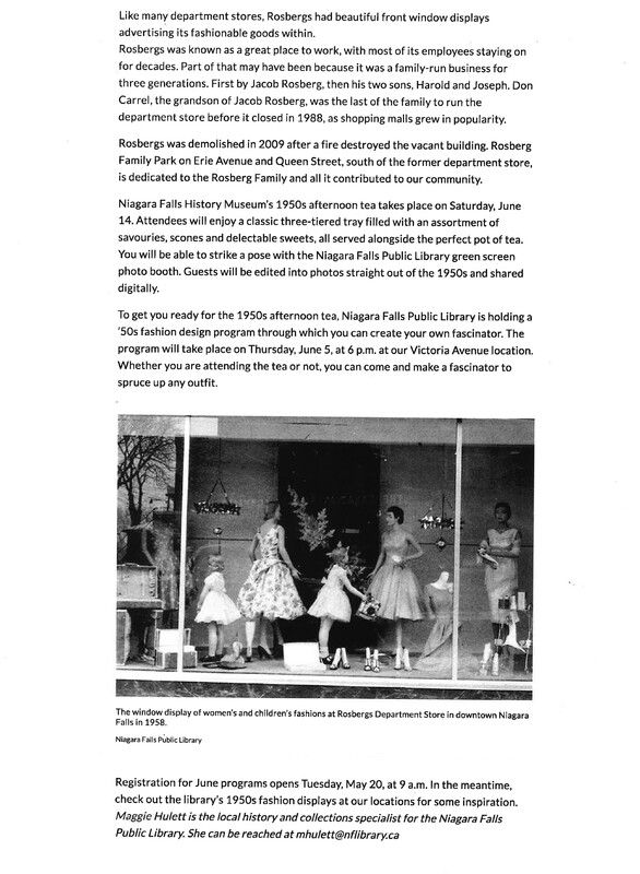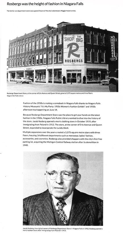 - Rosbergs was the height of fashion in Niagara Falls : The family-run department store was a grand fixture of the city's downtown
