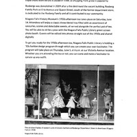 - Rosberg, Jacob / Rosberg, Harold / Rosberg, Joseph / Carrel, Don /Erie Avenue and Queen Street / Rosberg Family Park / Niagara Falls History Museum / 1950s inspired afternoon tea / fascinator library program