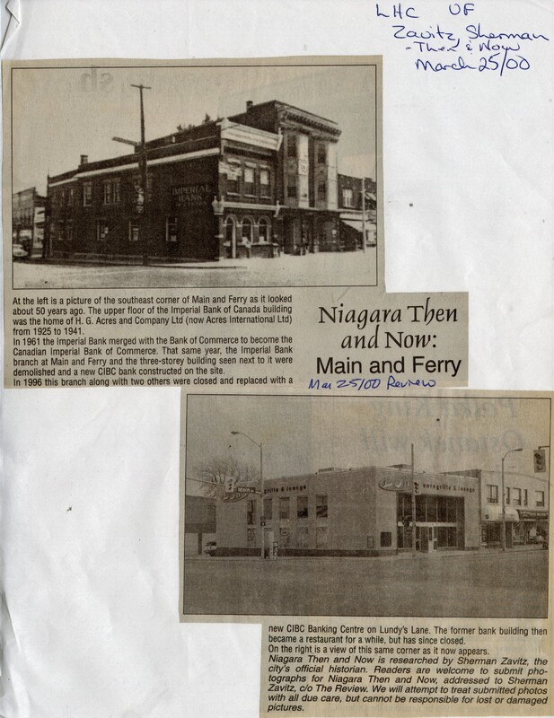 - Sherman Zavitz Niagara Then and Now Newspaper Column Collection