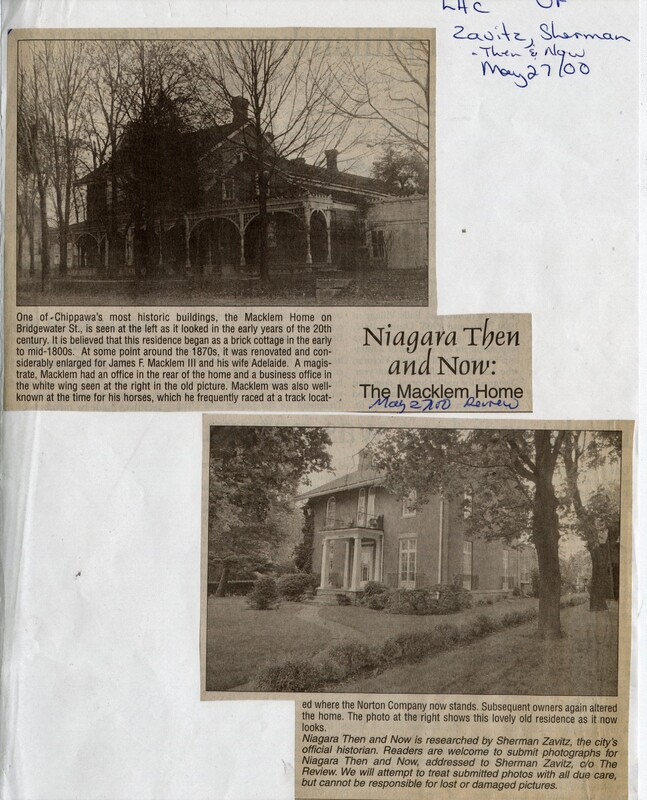 - The Macklem Home / Bridgewater Street / Macklem III, James F. / Chippawa