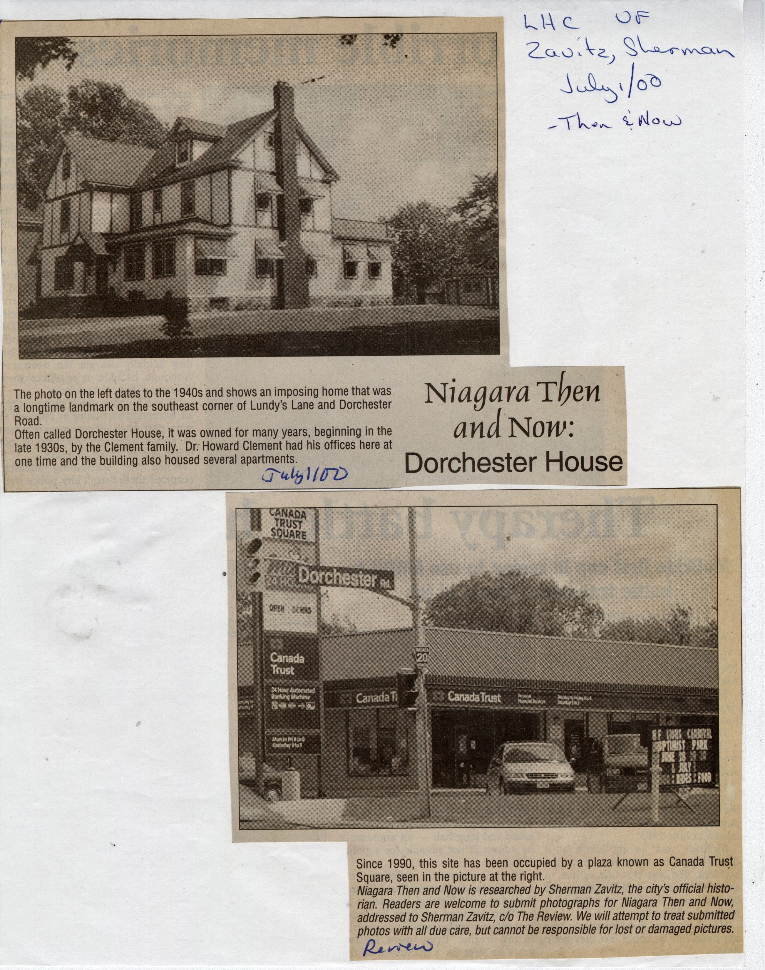 - Dorchester House / Clement, Howard Dr. / Clement Family / Lundy's Lane / Dorchester Road / 1940's / Canada Trust Square