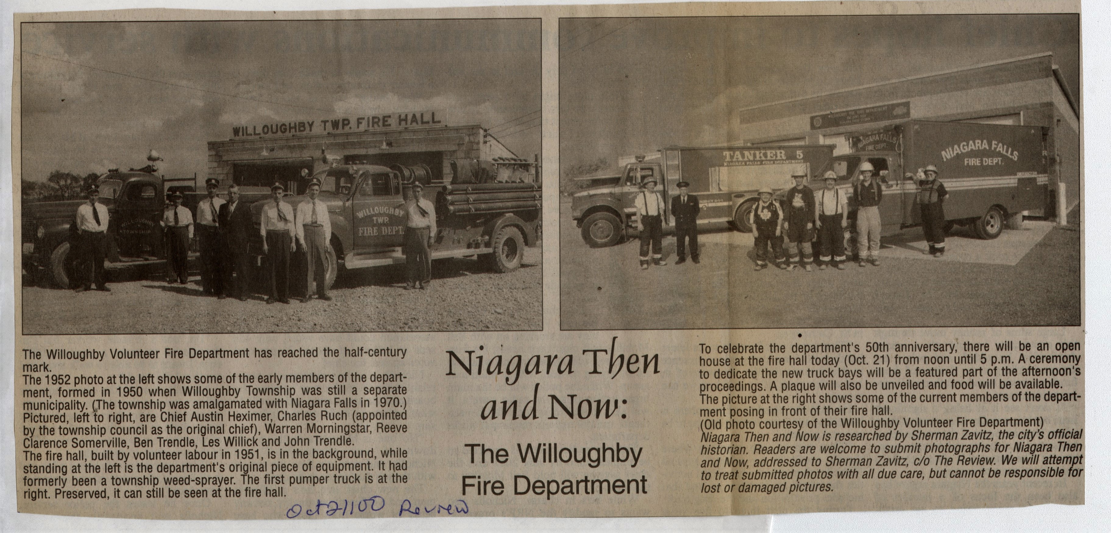 - The Willoughby Volunteer Fire Department / 1952 / Heximer, Austin (Chief) / Ruch, Charles / Morningstar, Warren / Somerville, Clarence (Reeve) / Trendle, Ben / Willick, Les / Trendle, John