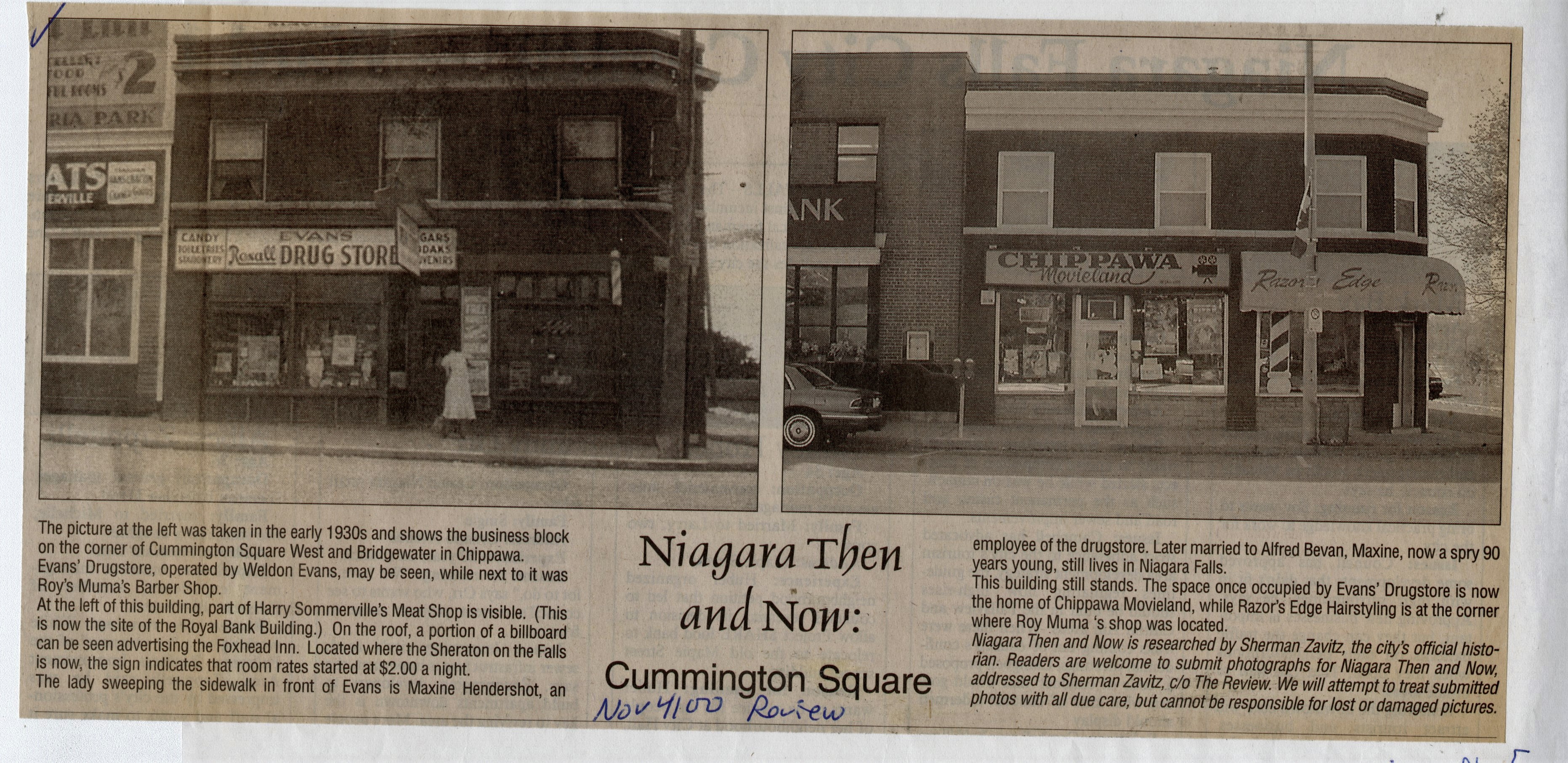 - Cummington Square West / Chippawa / Evans, Weldon / Roy Muma's Barber Shop / Harry Somerville's Meat Shop